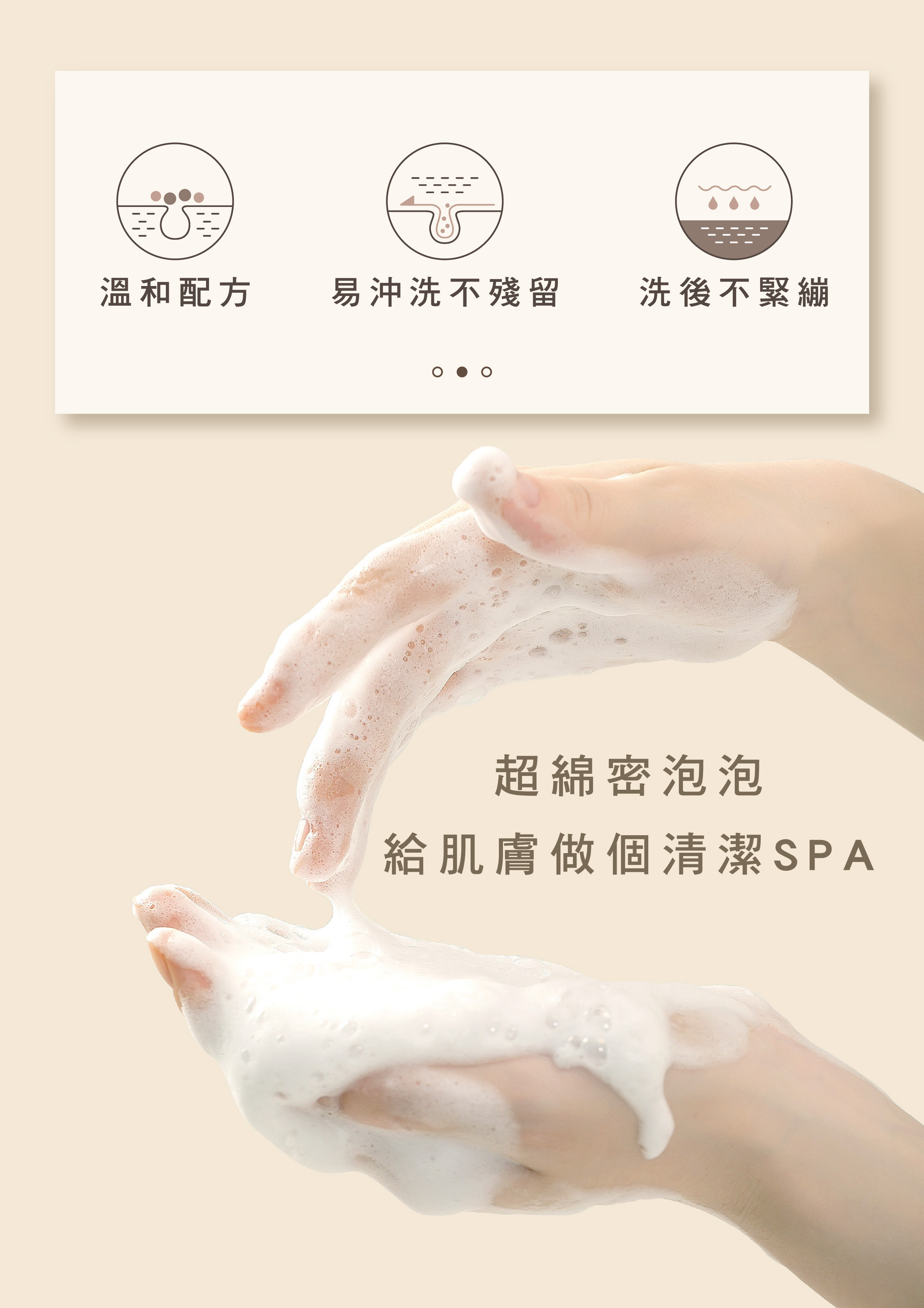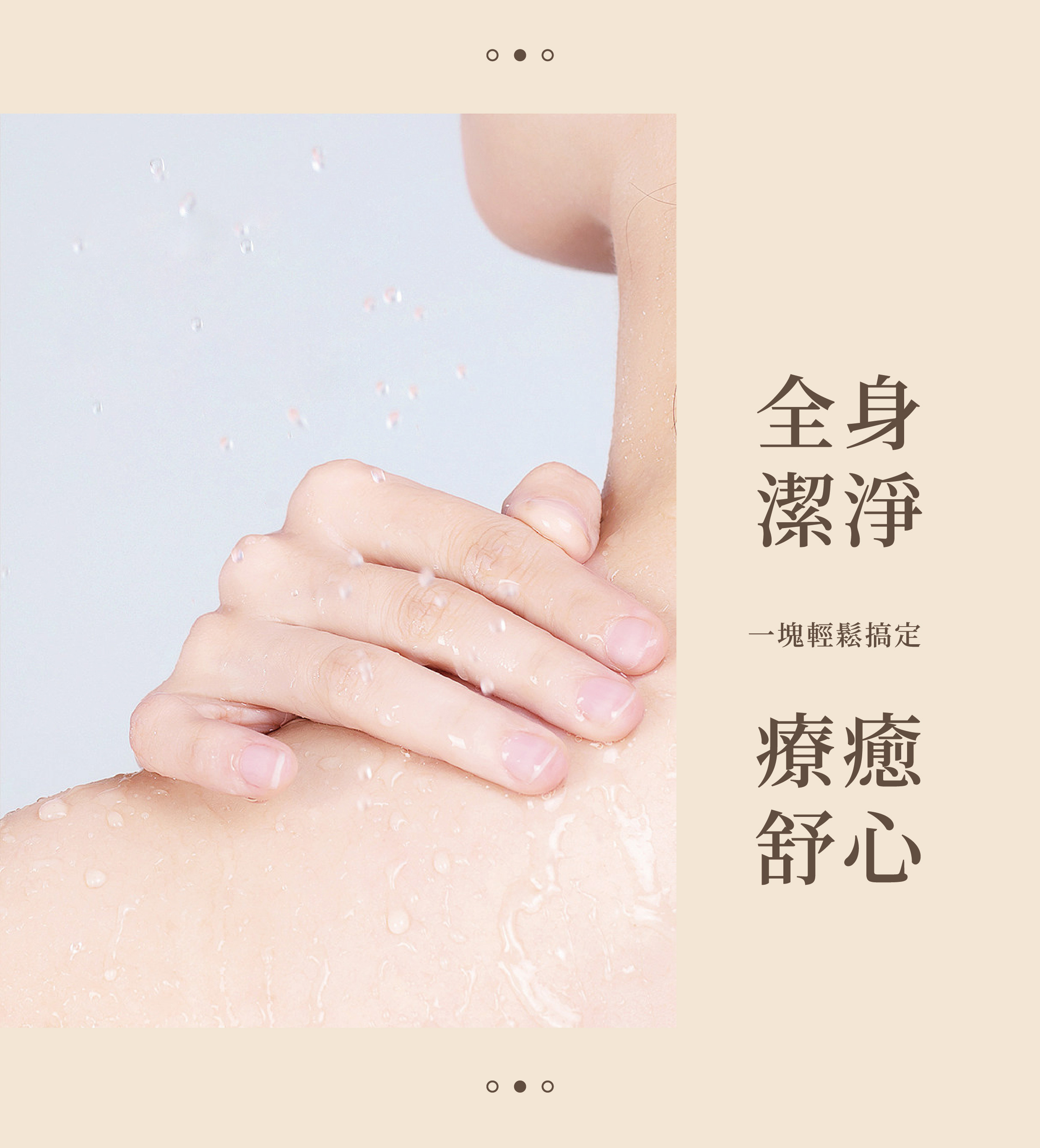 沾一點水並使用起泡網或直接用手搓揉起泡後,洗淨全身,再以清水將泡沫沖洗乾淨。