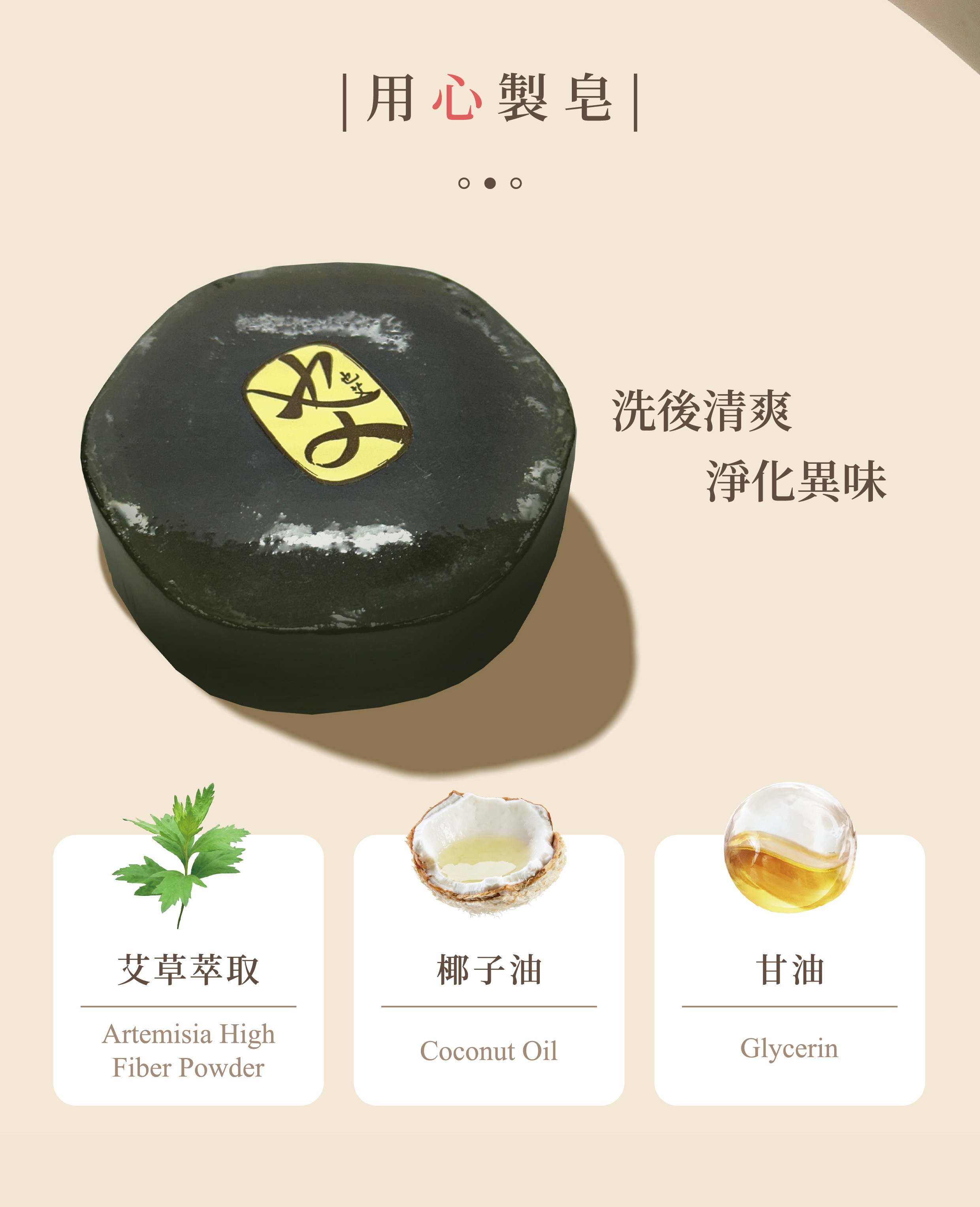 艾草萃取、椰子油、香蜂草。