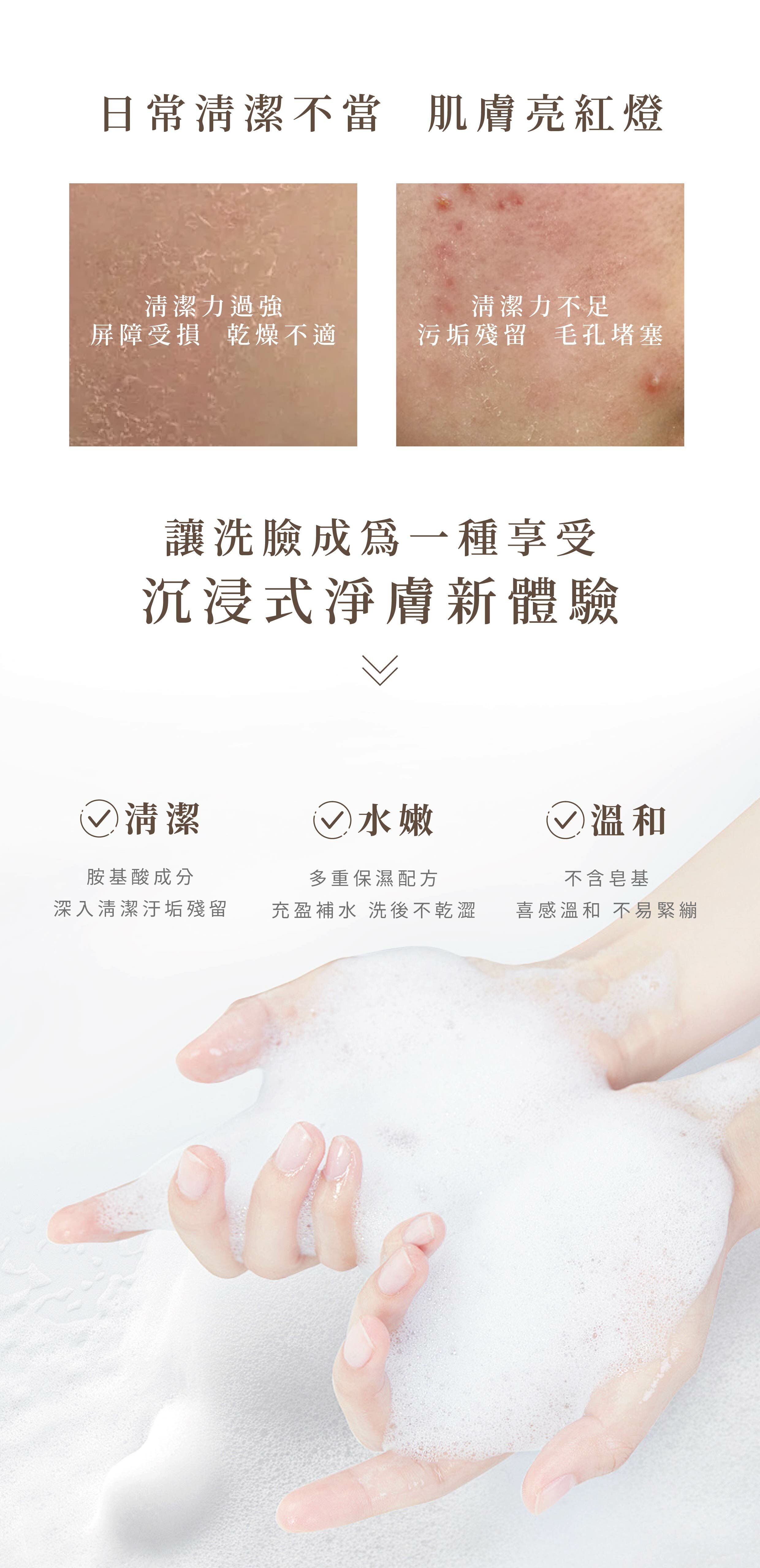 溫和洗淨、清潔肌膚、洗後肌膚柔嫩