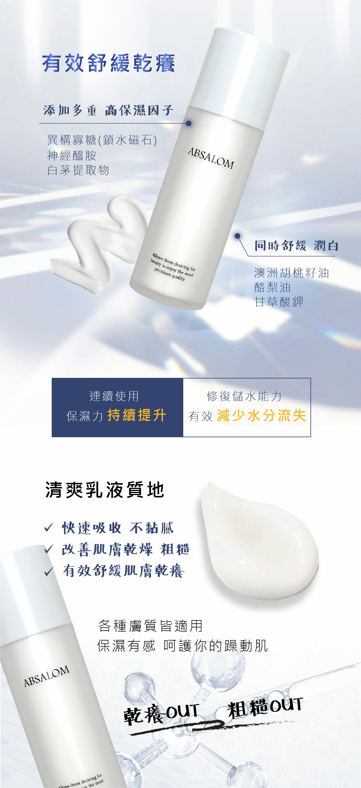 助於修復、舒緩肌膚乾燥,使肌膚由內而外恢復光澤亮麗。