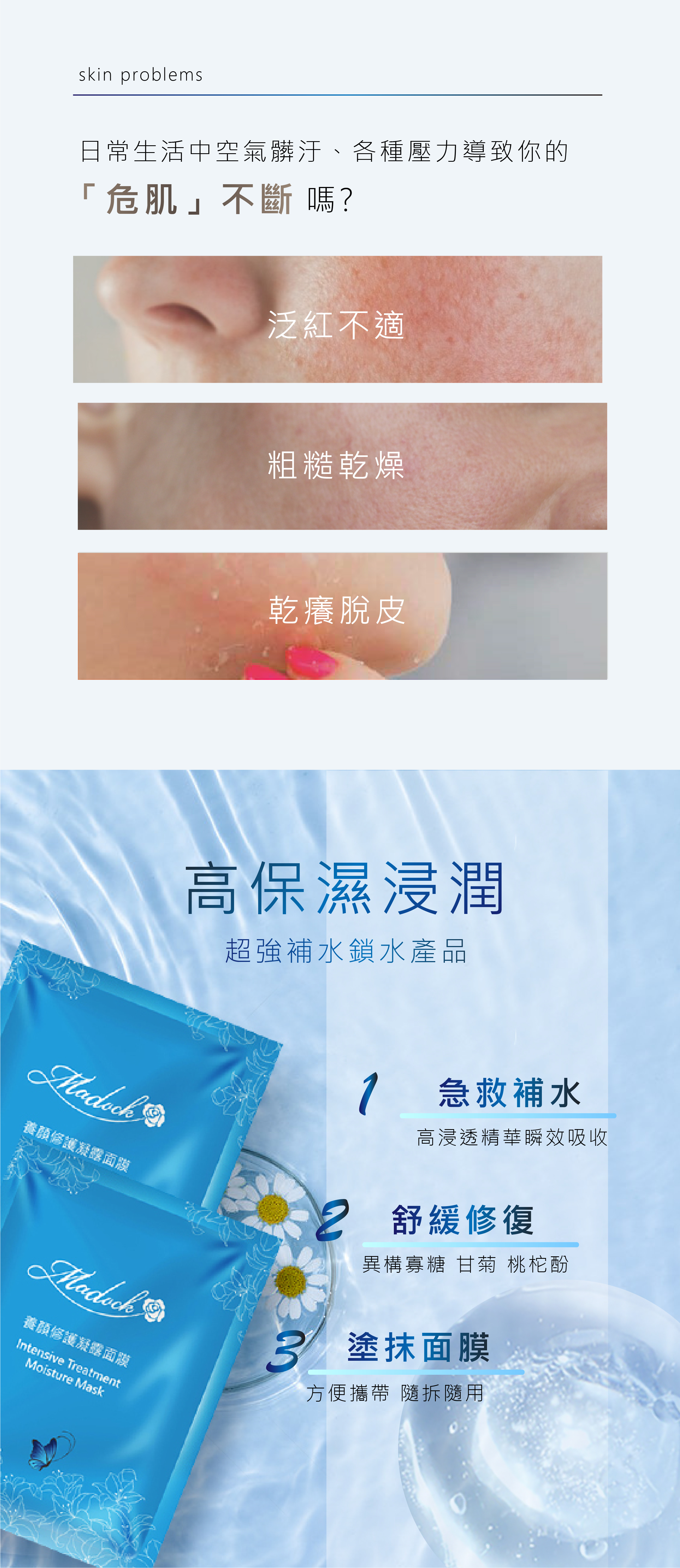 1. 補充肌膚流失的水分。