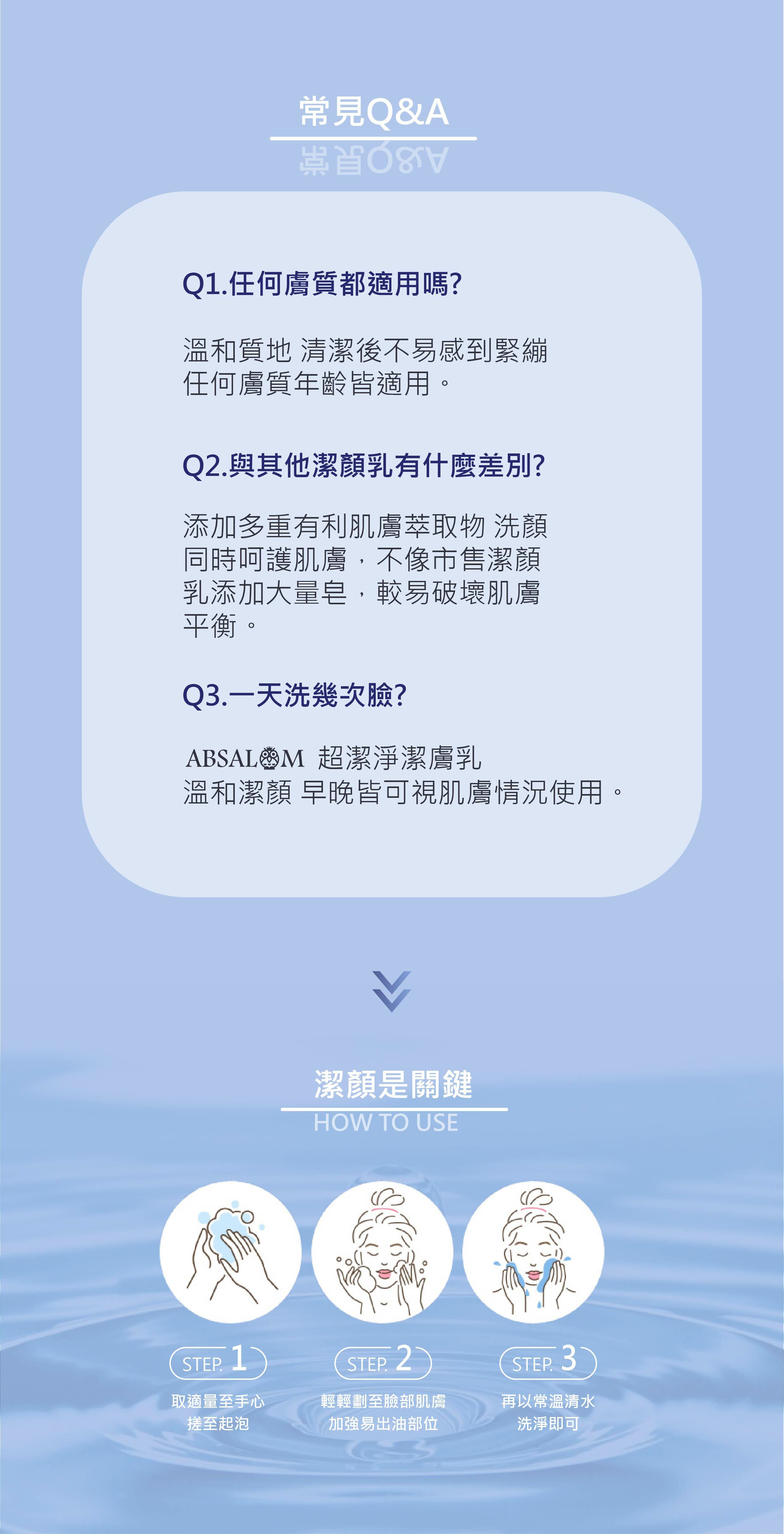 取適量於手心,加入少量水分搓揉成細泡後,仔細清洗全臉,待髒污溶解再溫水洗。