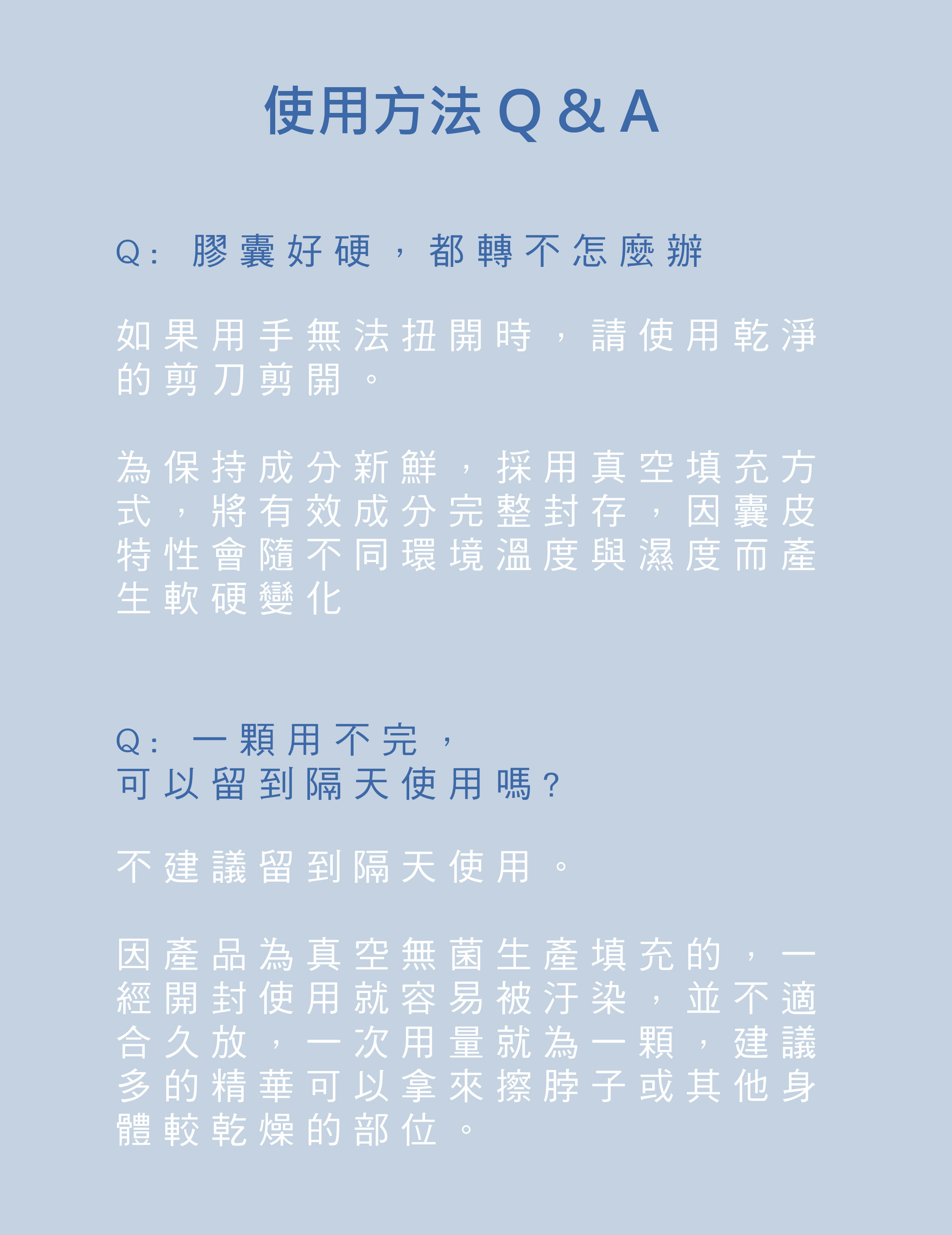 清潔保養後,取一顆塗抹於全臉,輕拍至吸收即可。
